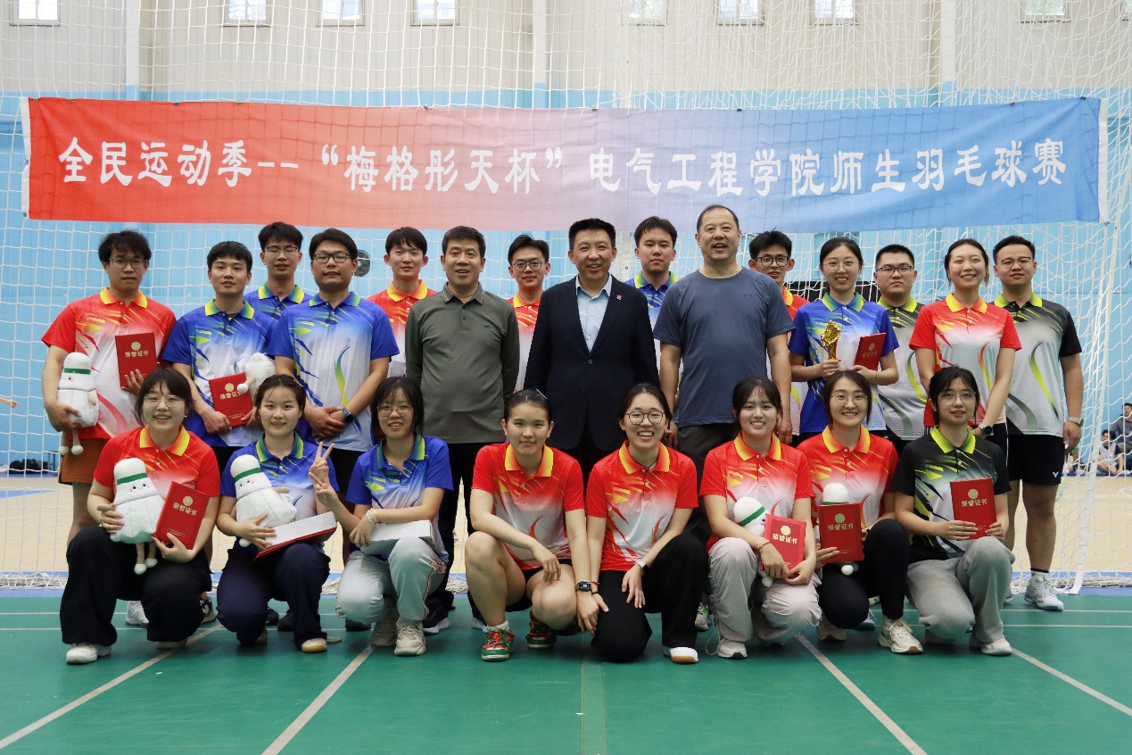 胜负终有期,情谊恒久长,这场羽毛球赛激荡出的拼搏热情,正转化为电气学子砥砺前行的内生动力。当球网前的专注力延伸至实验室,当团队协作的默契投射到科研攻关,体育精神已深深融入我们的成长基因。未来,我们将继续以昂扬之姿投身学习科研,用运动场淬炼出的意志力突破学术关隘,让青春在全面建设社会主义现代化国家的新征程中绽放绚丽之花!