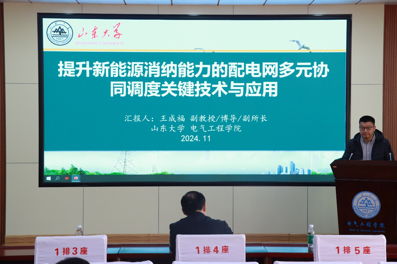 会上,王成福从背景、内容、创新点以及总结和展望四个方面详细汇报了题为《提升新能源消纳能力的配电网多元协同调度关键技术与应用》的学术课题。他强调,在如今新能源逐年攀升的背景下,电网调度需要面对和解决的问题逐渐增多,因此需要从不同角度、采用不同策略和方法来解决当前对新能源不确定性难以把握的问题,同时还要能够将这些技术方法从模拟仿真推广到实际运用。