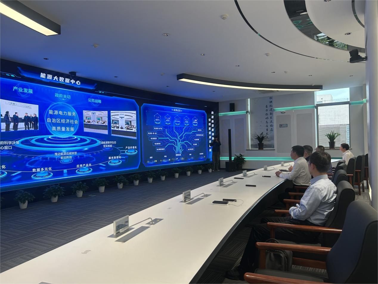 座谈会前,朱德建一行走进调度控制中心,实地了解国网新疆电力新能源发展与消纳现状,现场观看新疆电力市场实景展示及电力“双碳”场景演示,直观感受新疆在能源转型领域取得的实践成果。