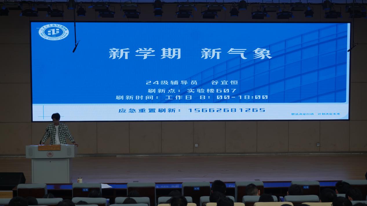 此外,2024级本科生辅导员谷宜恒以“新学期,新气象”为题,强化同学们的安全意识。从出行、用电、交友、心理等多个方面,细心提醒同学们注意身边潜在危险,在新学期中保护好自身安全,必要时寻求老师的帮助。同时,谷宜恒也对同学们提出了纪律要求,一切按规定行事,保证内务整洁及学术诚信。