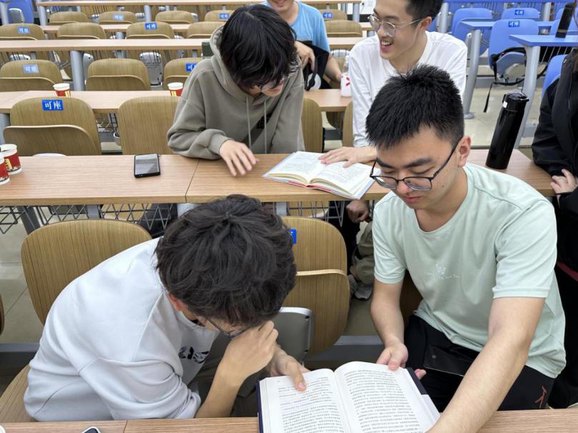分组讨论环节中,同学们围绕“如何把阅读转化为行动力”等话题展开热烈讨论,现场气氛活跃、思维碰撞不断。此外,同学们还自发开展“书签寄语”活动,在书页中留下彼此的阅读箴言与学习建议。